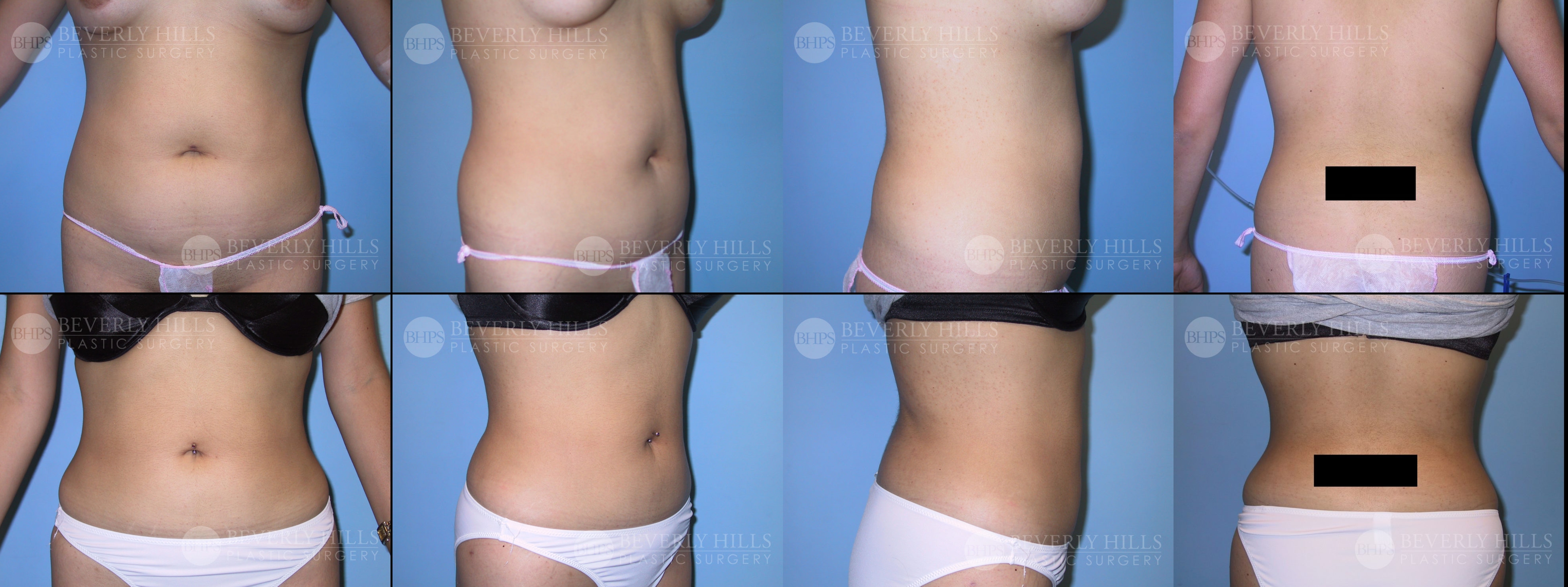 This patient had liposuction to the abdomen, flanks, and inner thighs.