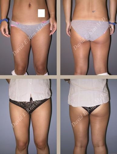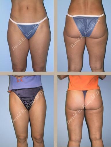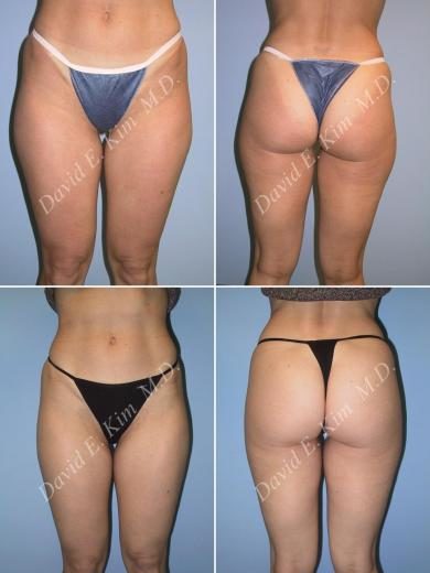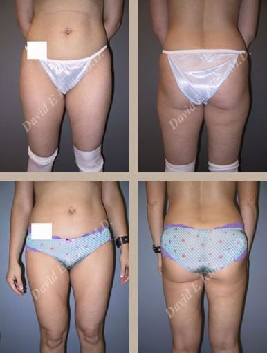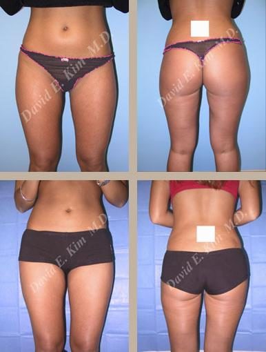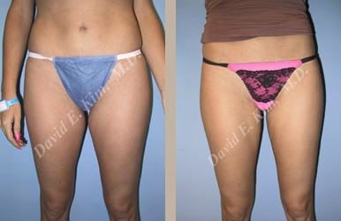 This patient had liposuction to the abdomen and flanks and inner and outer thighs.