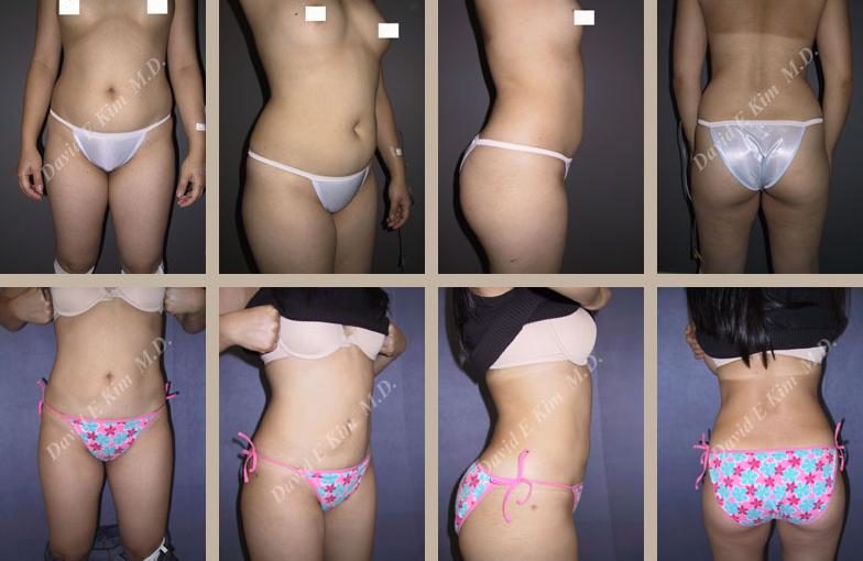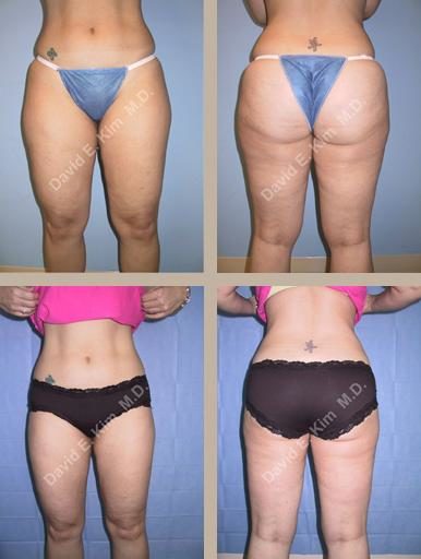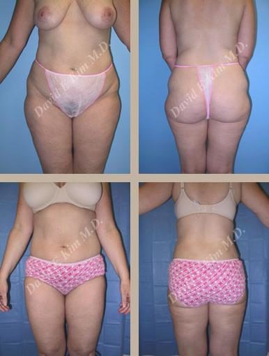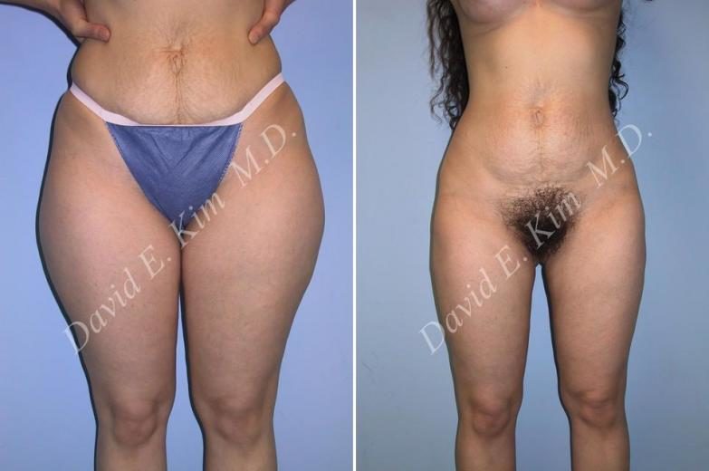 This patient had liposuction to the abdomen, flanks, inner, outer thighs, and knees.