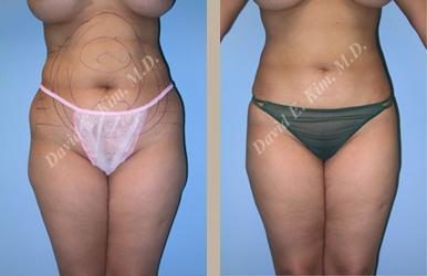 This patient had liposuction to the abdomen and flanks and outer thighs.
