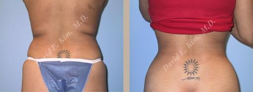 This patient had liposuction to the abdomen and flanks for a flatter stomach and more of a figure at the waist. And also liposuction underneath the buttocks to help shape this region.