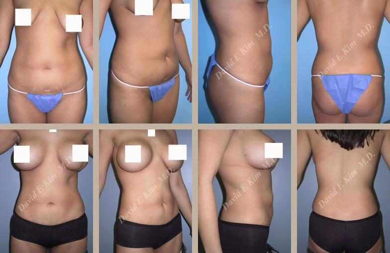 This patient had liposuction of the abdomen and flanks and breast augmentation.